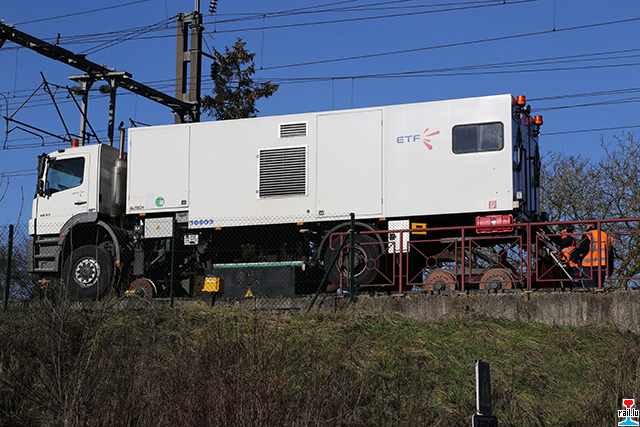 ETF - autech 2-Wege-Schienenschleiffahrzeug (MB 1833) in Petingen im Einsatz (Photos: