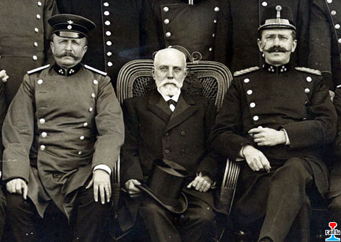 Die Uniform auf dem Foto entspricht der Uniformordnung der REL ab 1891. Da hatten dann alle Uniformen Stehkragen.