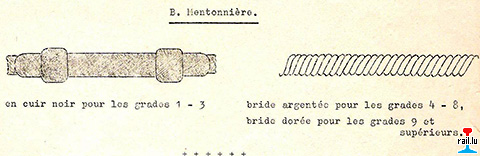 pour les grades 1 - 3; bride argentée pour les grades 4 - 8, bride dorée pour les grades 9 et supérieurs.