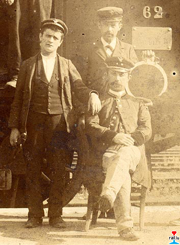 Die orangerote Dienstmütze für den Aufsichtsbeamten wurde ab März 1862 eingeführt. Ab 1891 wurden auch für die oberen Ränge Uniformen mit Stehkragen eingeführt. Die unteren Ränge hatten von Anfang an Stehkragen. Das Bild zeigt demnach einen Eisenbahner aus der Zeit von 1862 bis 1891!