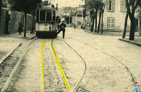 2. En chemin, il devait y avoir à la place du Saulcy une bifurcation par la rue Belle-Isle jusqu'à la centrale électrique ou plus loin, éventuellement aussi une autre bifurcation vers l'île aux Poudres.