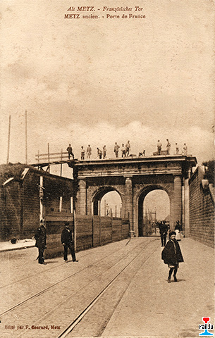 Metz - Porte de France - Französisches Tor - Pferdebahngleis (1435 mm) mit 3. Schiene der Förderbahn (600 mm) (AK Sammlung Richard Lutz)