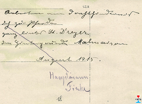 Unter Förderbahn verstand man damals im militärischen Bereich eine Bahn, deren Loren mit Pferden oder durch Menschen bewegt wurden, also ohne Lokomotiven. Das würde die durchweg einfache Gleisführung ohne große Weichenanlagen erklären. Eine Lore kann man zur Not leicht aus den Schienen heben (Info: 11.10.2025: Richard Lutz)