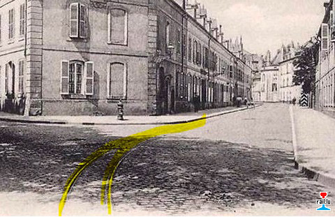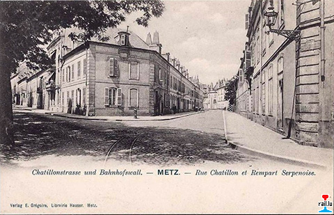 5. Es gab außerdem Gleise im Bereich Châtillonstraße (rue Châtillon), Bahnhofswall (Rempart Serpenoise), Theobaldsplatz (place Saint-Thiébault). Wie war diese mit den anderen Strecken verknüpft? Das Gleis müsste ja die Straßenbahnstrecke gequert haben. Im Bereich Römerallee (avenue Serpenoise) - Römerstraße (rue Serpenoise) gibt es sehr zahlreiche Ansichtskarten, da ist nirgends ein 600 mm Gleis zu sehen!