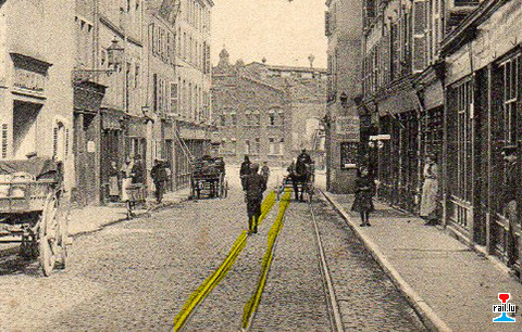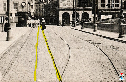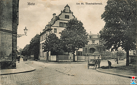 5. Il y avait également des voies dans le quartier de la rue Châtillon, du Rempart St-Thiébeau (Rempart Serpenoise) et de la place Saint-Thiébault. Comment étaient-elles reliées aux autres lignes ? La voie devait traverser la ligne de tramway. Il existe de nombreuses cartes postales de la zone Römerallee (avenue Serpenoise) - Römerstraße (rue Serpenoise), mais on n'y voit nulle part de voie de 600 mm !