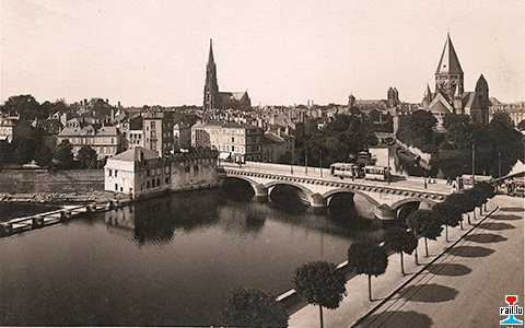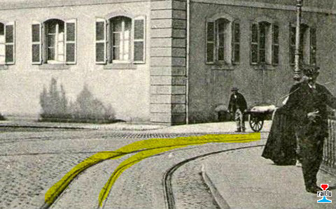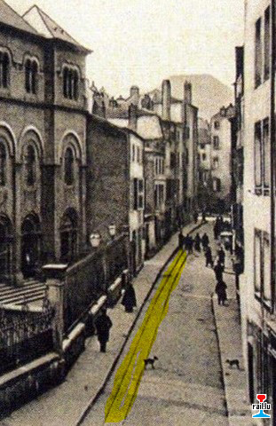 1. Die 60 cm - Militärbahn in Metz führte vom Bahnhof Devant-les-Ponts über Totenbrücke (Pont des Morts) und Mittelbrücke (Moyen-Pont), zweigte rechts in die Wachtstraße (rue de la Garde) ab, dann gleich wieder links zum Bezirkskommando und Justizpalast (Palais de Justice).