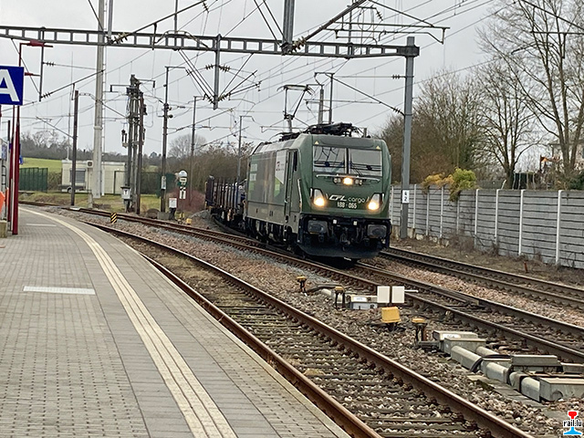 Transfert vum Lokzuch 6 x E186 & 2 x E188 vu Beetebuerg op de Belval, mat der CFL cargo 307, hei zu Esch (Photo: 13.02.2021 René Birgen)