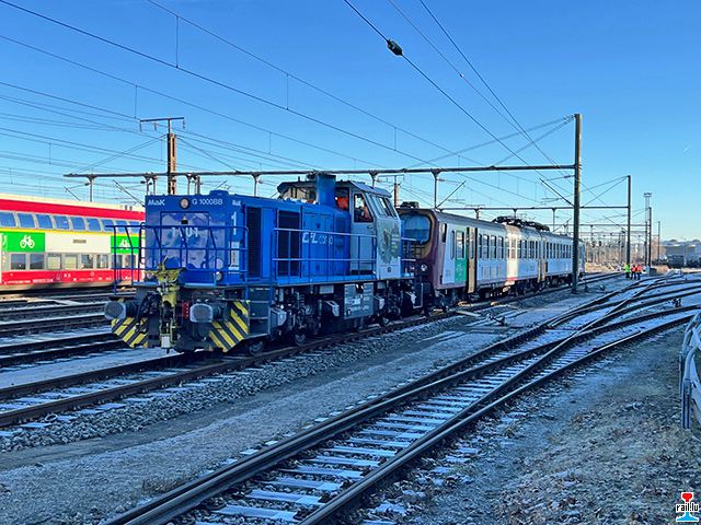 De Mëtteg war d'CFL - Automotrice 2022 op der Klengbettener Streck ënnerwee, wuel fir d'Caténairen ze iwwerpréiwen. Hei an der Klengbettener Gare. (Photos: 12.10.2025 Romain Schwartz)
