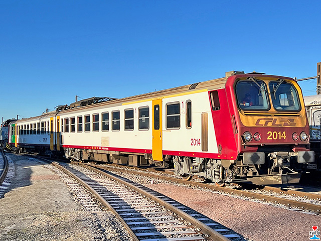 im Hintergrund CFL Triebwagen 2011 und daneben CFL Triebwagen 2001 auf den Abstellgleisen.