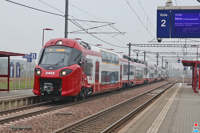 Neuer CFL - Elektrotriebwagen 2452 im Bahnhof von Luxemburg, fährt nach Athus. Photo: 19.01.2026 Hans de Rond)