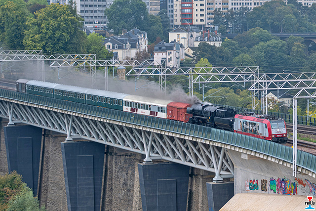 Train spécial avec locomotive à vapeur CFL 5519 et voitures Wegmann CFL à la halte