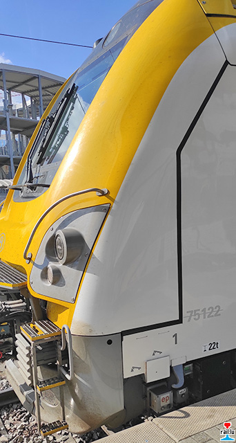 Zanter dëser Woch sinn M7 Steierween op de belschen Zich. Quasi all Zuch huet déi elo kritt. Hei eng Foto vun esou engem Exemplaire an der an der Stater Gare, (Photos: 15.4.2026 Romain Schwartz)