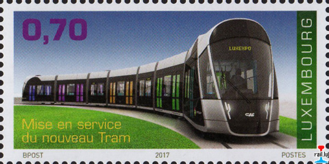 Timbre 0,70 € de 2017: Mise en service du nouveau Tram à Luxembourg (Scan: rail.lu)