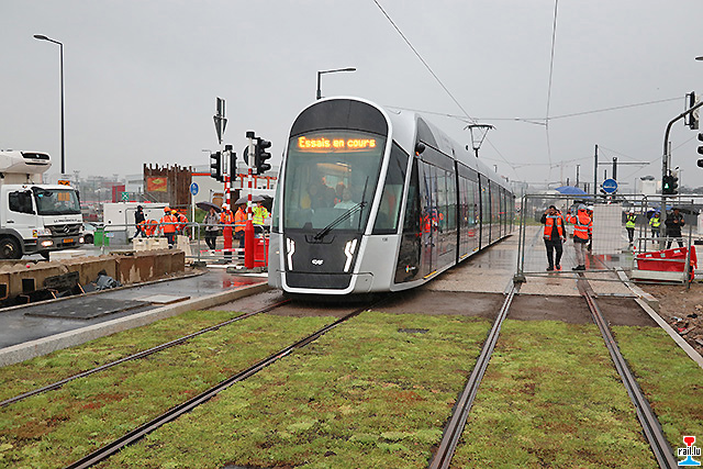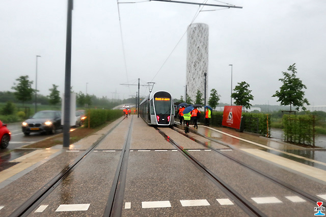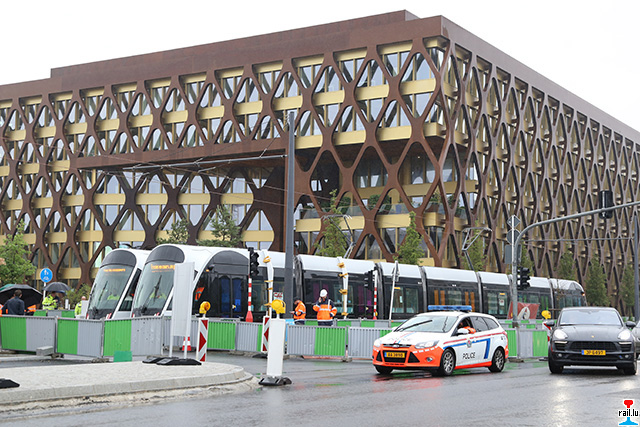 Am 12. Juli 2017 fanden auf Kirchberg die ersten dynamischen Tests der neuen Luxemburger Straßenbahn, der Luxtram statt. Begleitet wurden diese Versuche von zahlreichen Technikern und Ingenieuren. Die Versuchsfahrten finden in einer ersten Phase zwischen dem Depot und dem Sportzentrum Coque statt. Die Inbetriebnahme des ersten Streckenabschnitts ist für den Sonntag, 10. Dezember vorgesehen. (Photos: 12.07.2017 Francis Wagner)