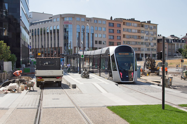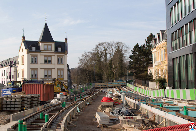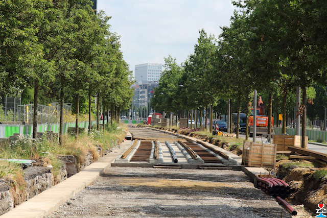 Avancement des travaux de la pose des voies du futur tramway au Kirchberg (Photos: 28.07.2016 jmo)