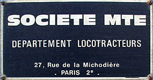 | Société MTE Département locotracteurs 27 rue de la Michodière Paris 2e |