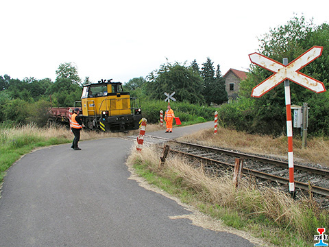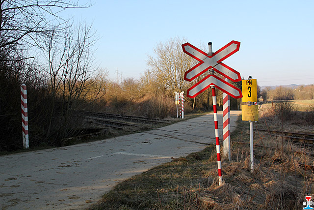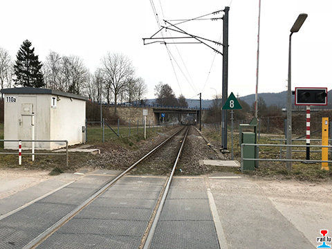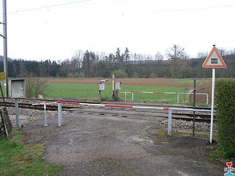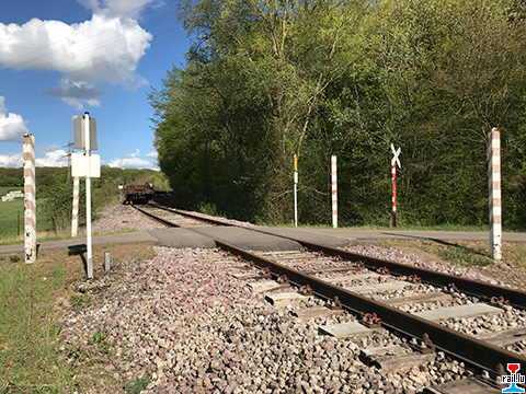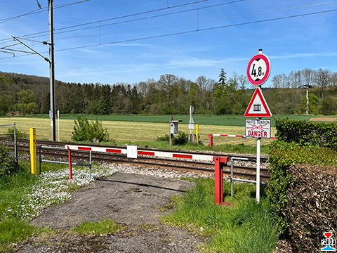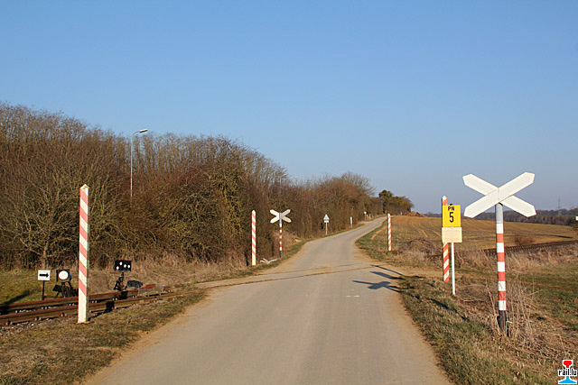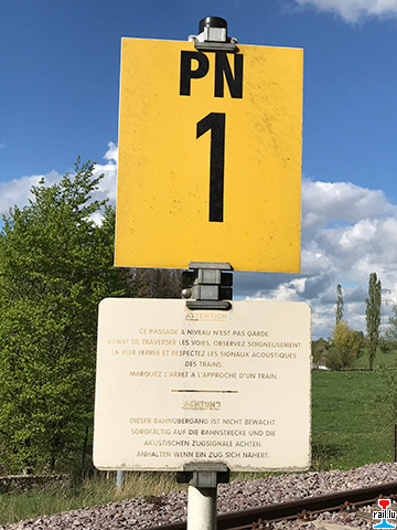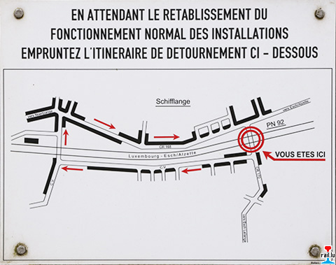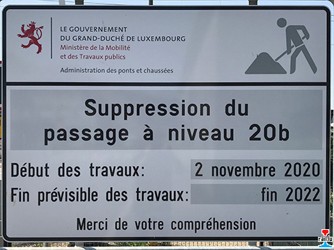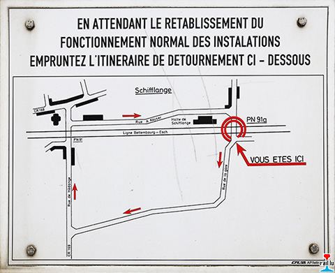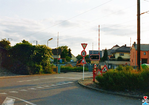 | 20C | ![]() Embranchement du chantier de la Route du Nord à Lorentzweiler-Klëck, à droite le panneau du PN 20C (Photo: 9.5.2003 jmo) |