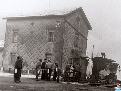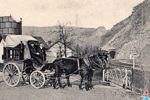 | 35a | ![]() D'Postkutsch Kautebach - Housen beim PN 35a zu Kautebach - Die Postkutsche Kautenbach - Hosingen beim Bahnübergang 35a in Kautenbach - Blick Richtung Norden - rechts vom Tunnel das Gleis zur Drehscheibe (Carte postale Poststempel: 9.8.1912; Collection: Robert Wagener) |