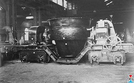 Chariot avec poche à laitier construit par ARBED Eich pour Terres