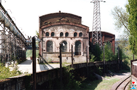 Terre Rouge, Esch/Alzette - Turbinenhalle, rechts das Gleis nach AES (Photo: Mai 1993 Marcel Schlim)