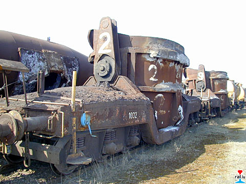 | 1032 | ![]() Chariot No 1032 avec poche No 2 à ARBED-Belval (Photo: 25.3.2003 jmo) |