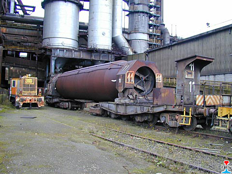 | 1155 | ![]() Schlackenwagen - Chariot avec poche (No 1155) à ARBED-Belval (Photo: 24.3.2003 jmo) |