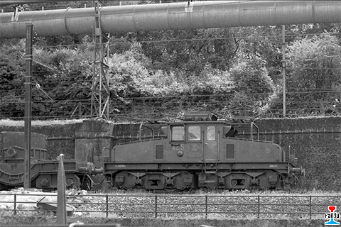 Locomotive électrique AES 9 avec une poche de fonte sur la ligne ARBED entre l'Usine ARBED-Esch et Terre-Rouge (Photo: 10.6.1976 Yves Locomot)