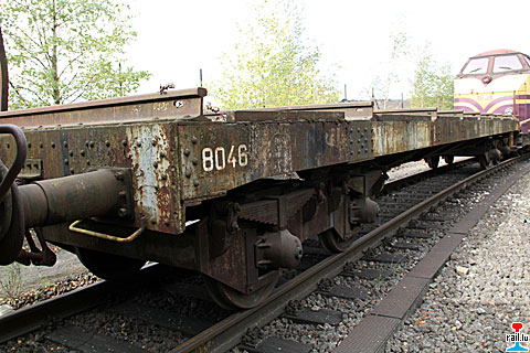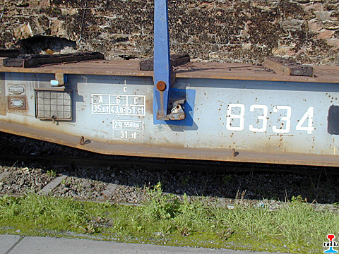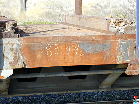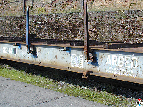 Wagon ARBED No 8350 (Rolanfer 57-Woippy - 1988 No série 558281) avec bogie (Société Franco-Belge, Raismes 1968 - SNCF 13039) chez Wallerich à Differdange (Photos: