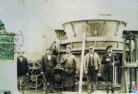 Hütte Differdingen - Einleeren der Charge im Konverter (Carte postale: Verlag Ch. Grieser, Hofphotograph, Luxemburg, 1916; collection: industrie.lu)