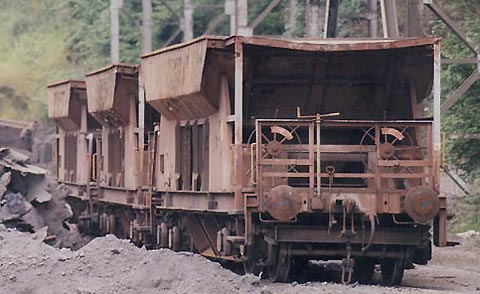 Chariot No ? avec poche No 13 (à sa droite chariot No 1038 avec poche No 4 et chariot No ? avec poche No 8) à ARBED-Belval (Photo: 17.2.2006 jmo)