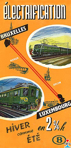 Dépliant SNCB éditée lors de l'Electrification de la ligne Bruxelles - Luxembourg en 1956