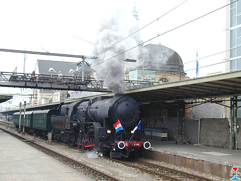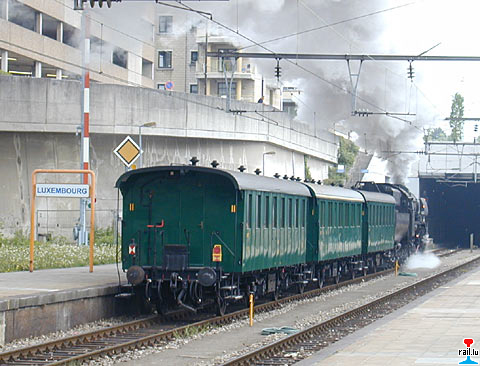 CFL-Dampflok 5519 mit PH-Reisewagen stehen im Bahnhof Luxemburg zur Sonderfahrt