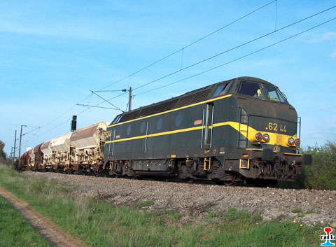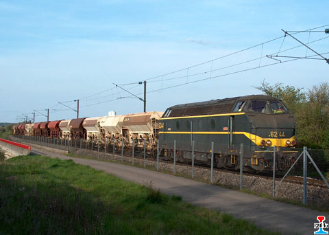 Locomotive SNCB 6244 avec 27 wagons avec scorie entre Noertzange et Kayl