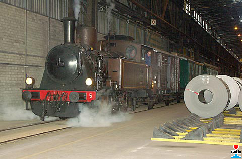 AMTF Dampflok N°5 auf dem Arcelor Gelände des Werks in Düdelingen