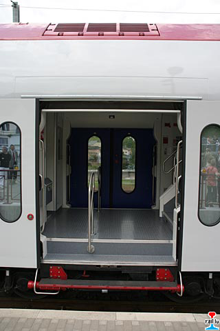 Links, der Niederflureinstieg der Steuerwagen, rechts der Einstieg der übrigen