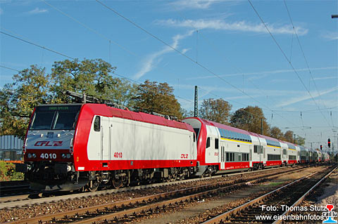 CFL-Lok 4009 und 4010 mit CFL-DOSTO-Wagen in Efringen-Kirchen