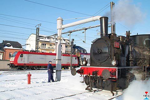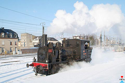 Den Train 1900 fiert Navetten tëschent der Péitenger Gare an dem Quai Hackels bei dat 50. Buergbrennen in Nidderréideng (Photos: 5.3.2006 Tom Schintgen)