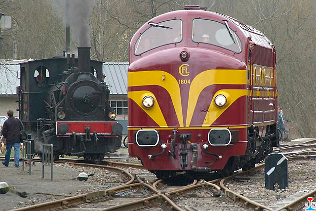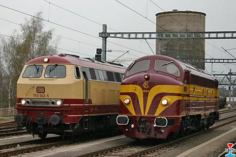 Locomotive diesel 217 002 (753 002) et SSMN Locomotive 1604 à Wasserbillig (Photo: 15.4.2006 Raymond v/d Hoven)
