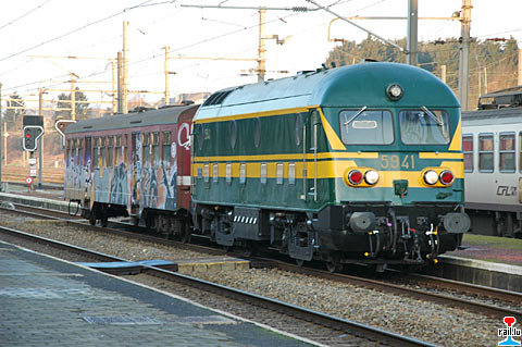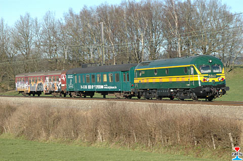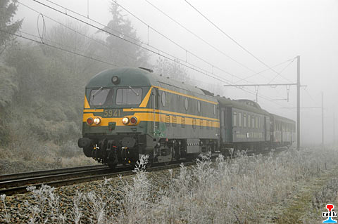 Transfert de 2 voitures (une K1AD à Stockem et une M2 à Athus) de la CIER - COMPAGNIE INTERNATIONALE DES EVENEMENTS SUR RAIL de Maldegem – Schaerbeek à Stockem et à Athus avec la loco 5941 du PFT. (Photos: 23.12.2006 Jean-Marie Thill)