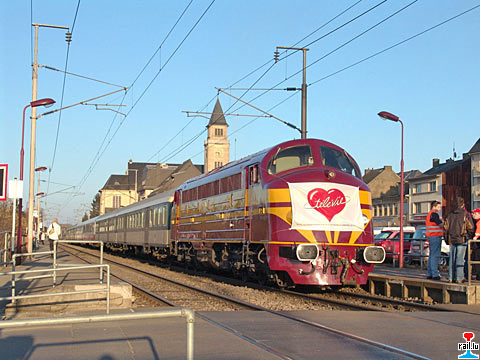 CFL Lok 4020 "télévie" mit RB 4713 in Rodange (Photo: 17.03.2006 Armand Schmit)