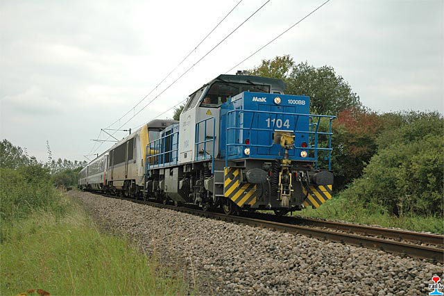 EC 97 "Iris" avec locomotive SNCB 1357 dévié via Dippach, ici à Leudelange (Photo: 8.9.2007 Mike Wohl)