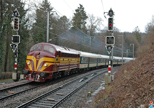 Sonderzug Chrëstdagszuch 2007 mit Diesellok 1604 und CFL cargo Diesellok 1812 in Dommeldange (Photo: