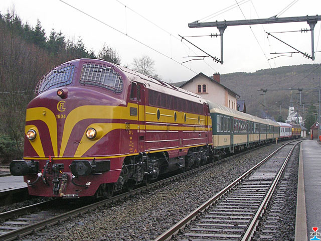 Sonderzug Chrëstdagszuch 2007 mit Diesellok 1604 und CFL cargo Diesellok 1812 in Pétange (Photos: