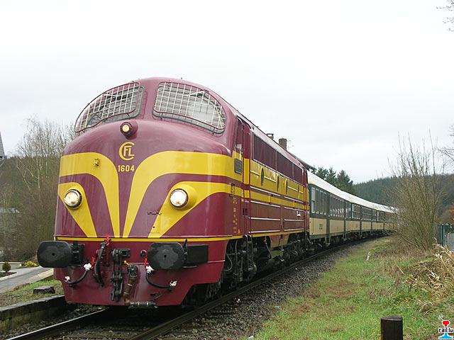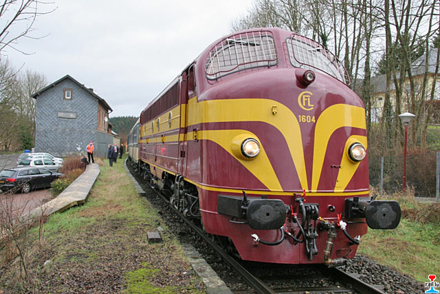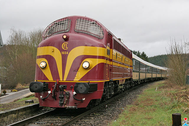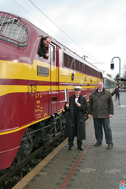 Start des Sonderzuges Chrëstdagszuch 2007 der "Ecole hôtelière Alexis Heck" mit Diesellok 1604 und CFL cargo Diesellok 1812 in Diekirch (Photo: