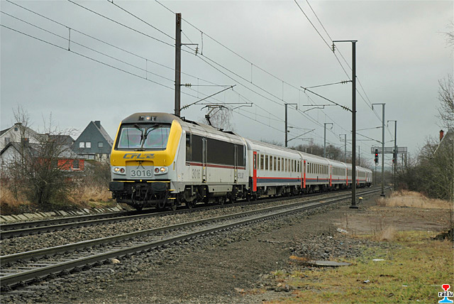 Locomotive CFL 3016 avec train spécial pour l´école européenne de Bruxelles à Berchem (Photo: 17.1.2008 Mike Wohl)