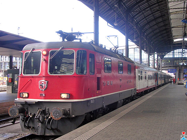 CFL-Wantersportzuch mit SBB-Lokomotive Re II 4/4 11196, CFL-Wegmann-Reisewagen und Corail-Reisewagen in Basel, Richtung