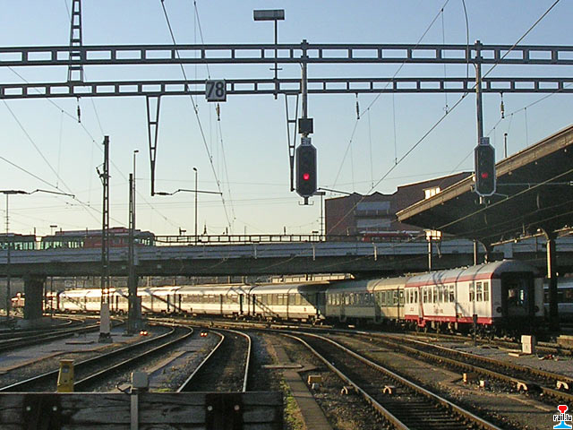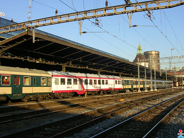 CFL - Wintersportzuch mit CFL-Wegmann-Reisewagen und Corail-Reisewagen in Basel, Richtung