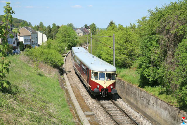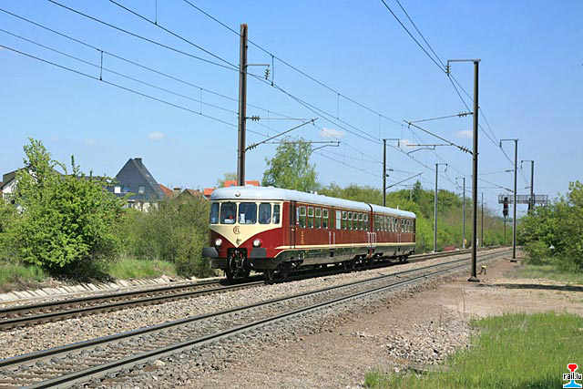 Der Museumstriebwagen Westwaggon Z208 auf dem Weg zum Plandiensteinsatz auf der Strecke Noertzange - Rumelange, hier bei Noertzange (Photo: 7.5.2008 Nicolas Armand)