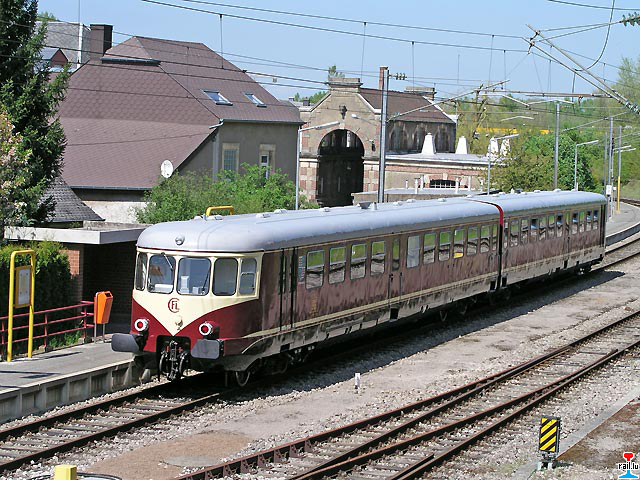 Der Museumstriebwagen Westwaggon Z208 zwecks Ausbildungen, im Plandiensteinsatz auf der Strecke Noertzange - Rumelange, hier in Rumelange (Photos: 7.5.2008 Nicolas Armand)