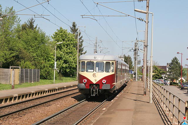 Der Museumstriebwagen Westwaggon Z208 zwecks Ausbildungen, im Plandiensteinsatz auf der Strecke Noertzange - Rumelange, hier in Kayl (Photo: 7.5.2008 jmo)